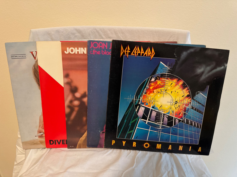 Lot # 15 - Vintage LP Lot - Def Leppard, Van Halen, John Cougar, Joan Jett Starting Bid: $ 5.00 Bids: Bidding starts in: |