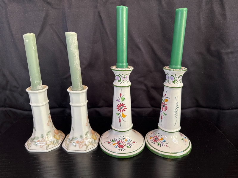 Lot # 12 - Hand-Painted Portuguese Ceramic & Heinrich Candle Holders Starting Bid: $ 5.00 Bids: Bidding starts in: |