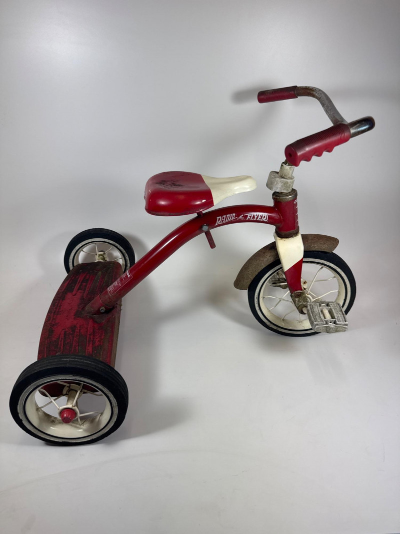 his is a Radio Flyer Classic Red Dual-Deck Tricycle, a timeless children's ride-on toy known for its nostalgic styling and sturdy build.