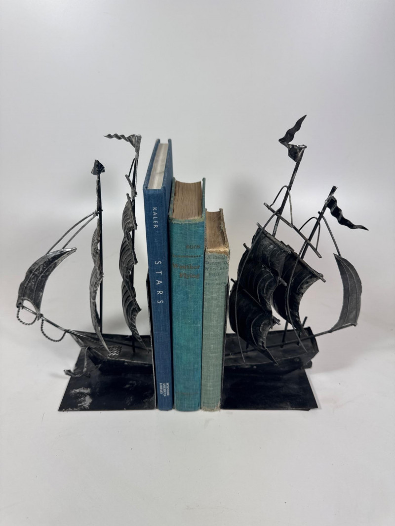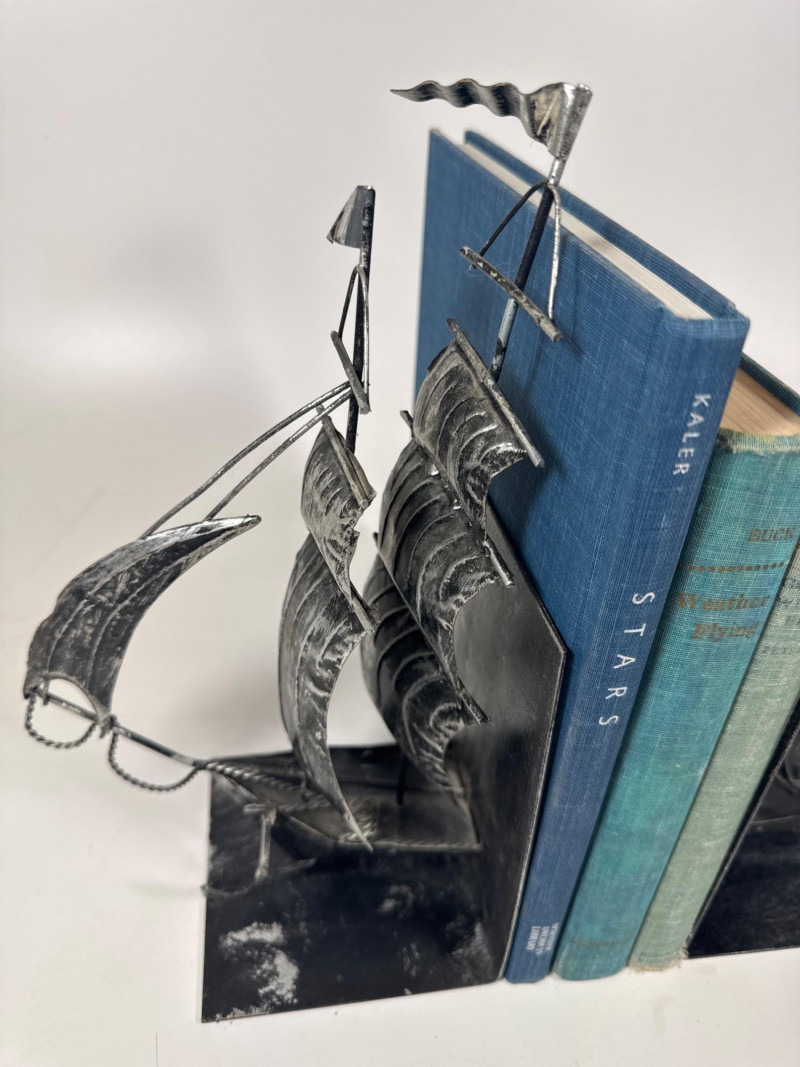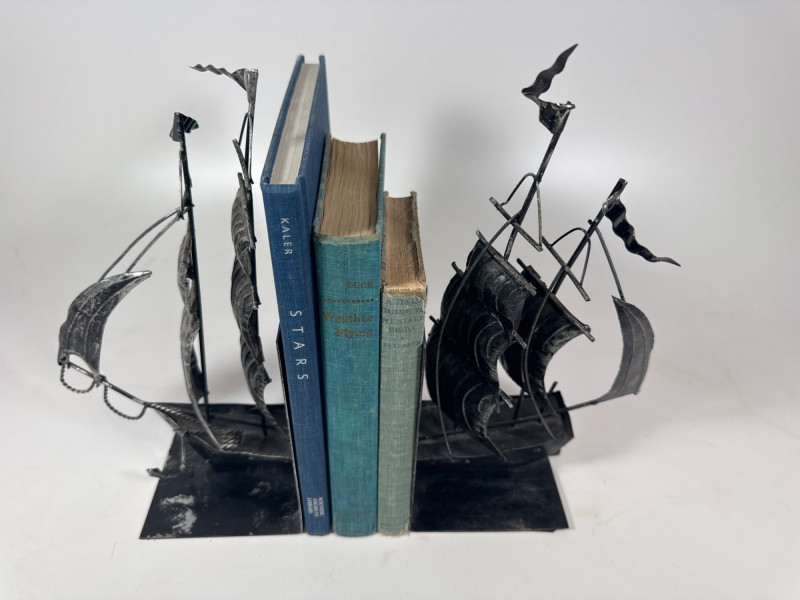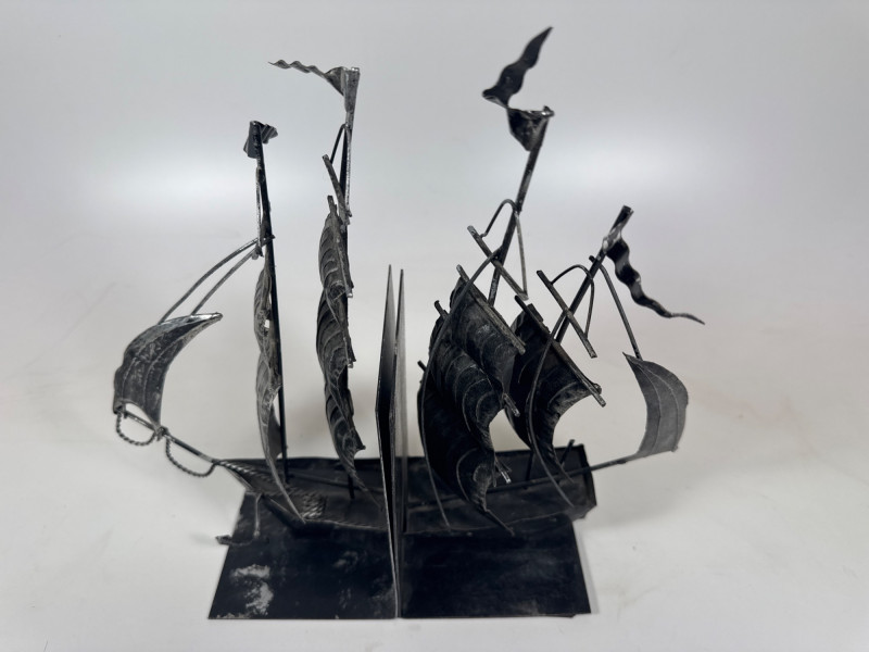 Vintage metal ship bookends.