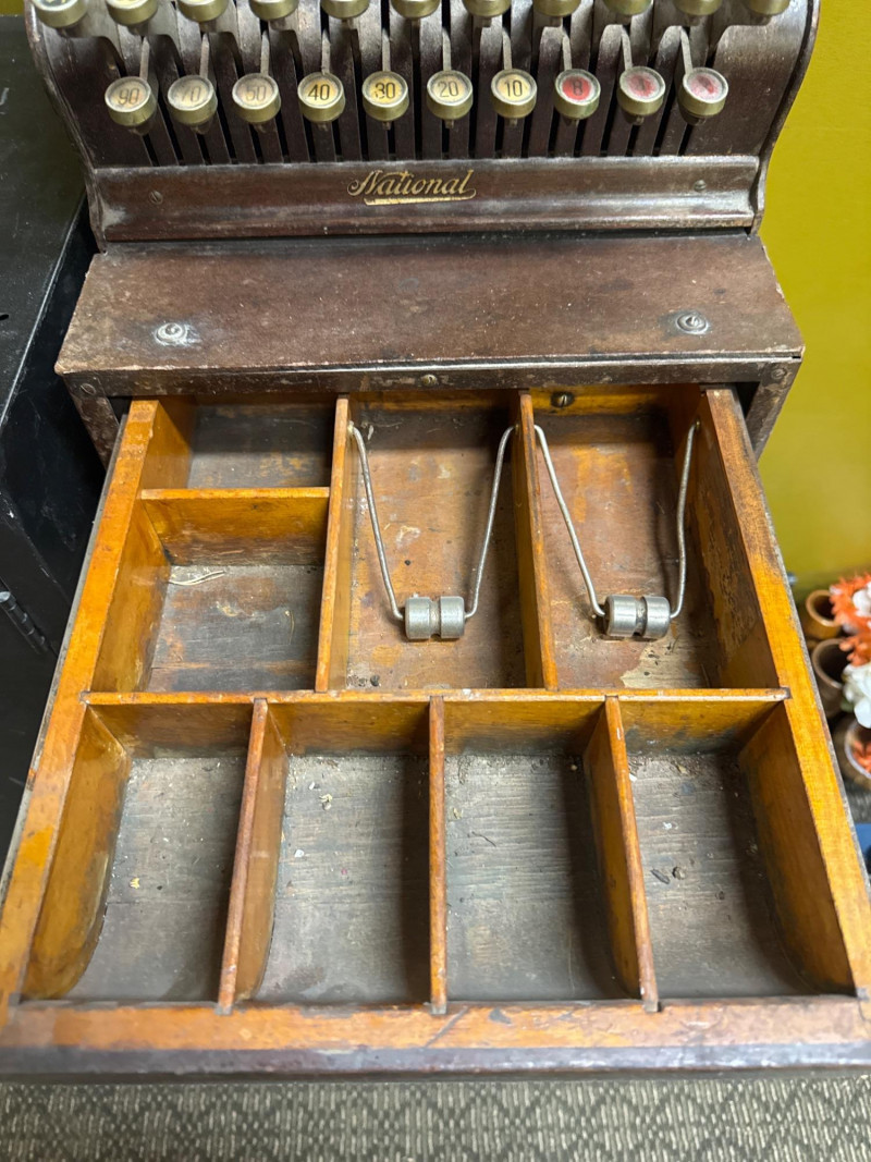 This is an antique National Cash Register (NCR), a mechanical "candy store" or barber shop style till likely manufactured between 1919 and the late 1920s.