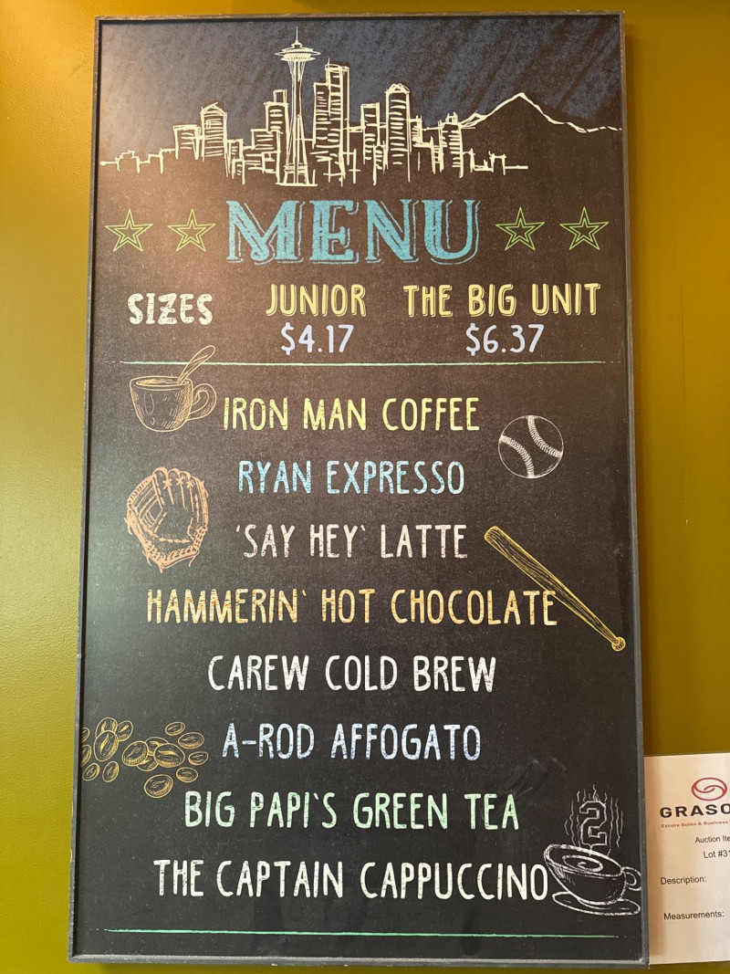 Baseball themed menu board. Not chalk but permanent writing.