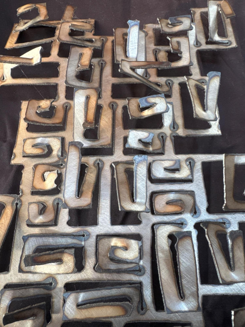 Metal sculpture has an invoice as provenance - Bought in Palm Desert and done by artist Michael Moriarity - Originally purchased for $299.00
