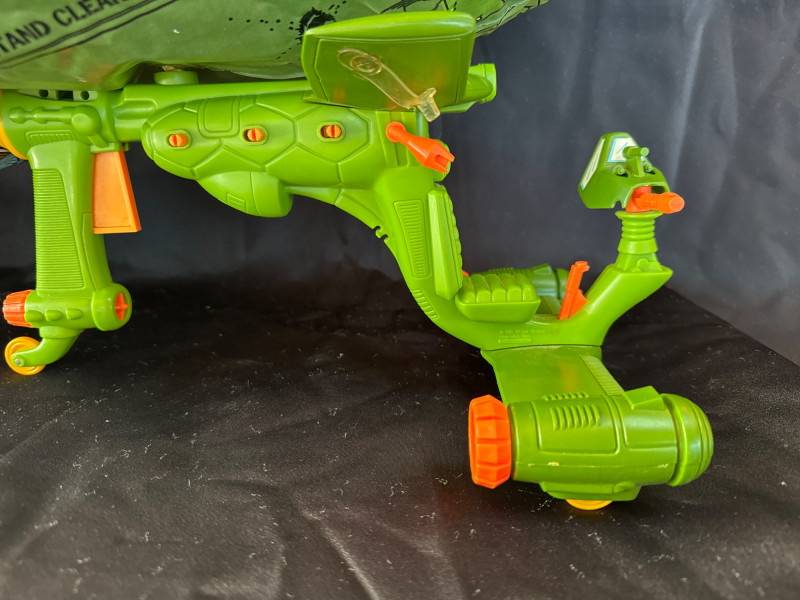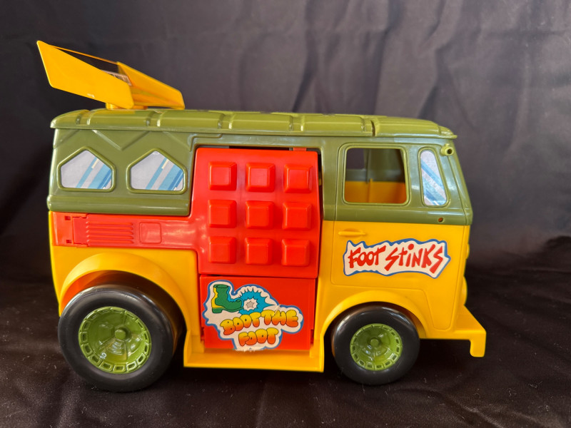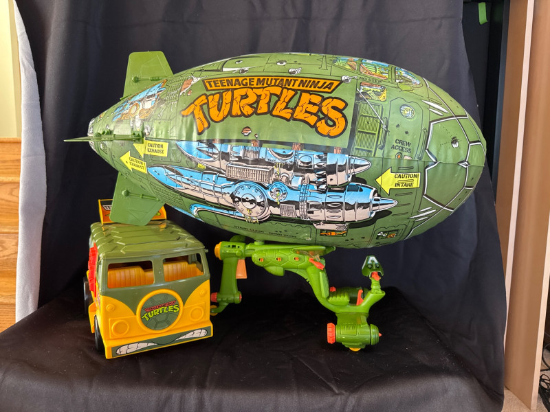 This auction is for both iconic vintage vehicles from the original 1988 Teenage Mutant Ninja Turtles (TMNT) toy line by Playmates: the Turtle Blimp and the Turtle Party Wagon (also known as the Party Van)
