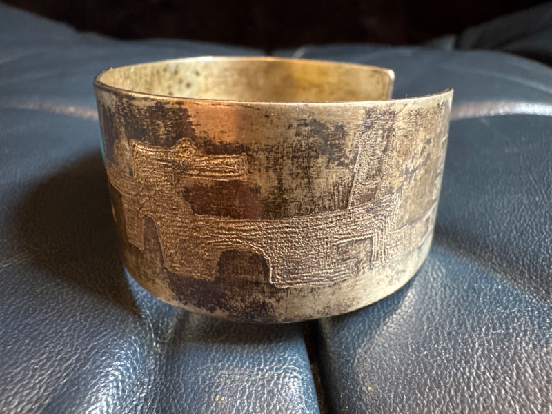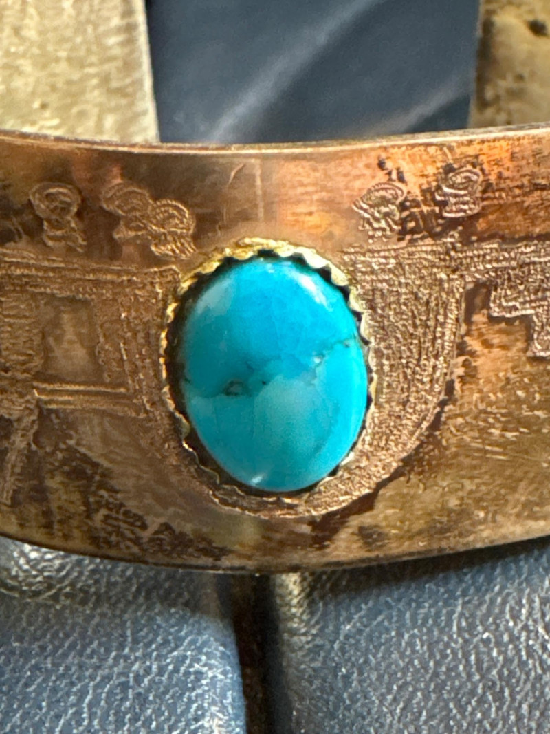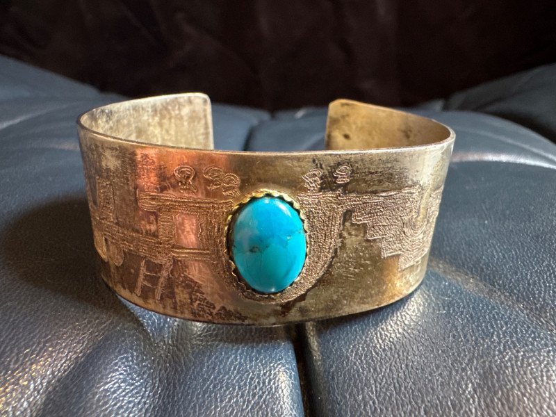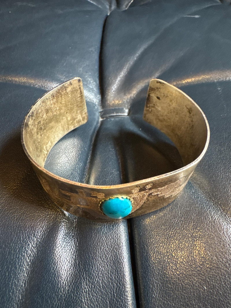 Lot # 20 - Tufa-Cast Silver Cuff w/ Turquoise Stone
