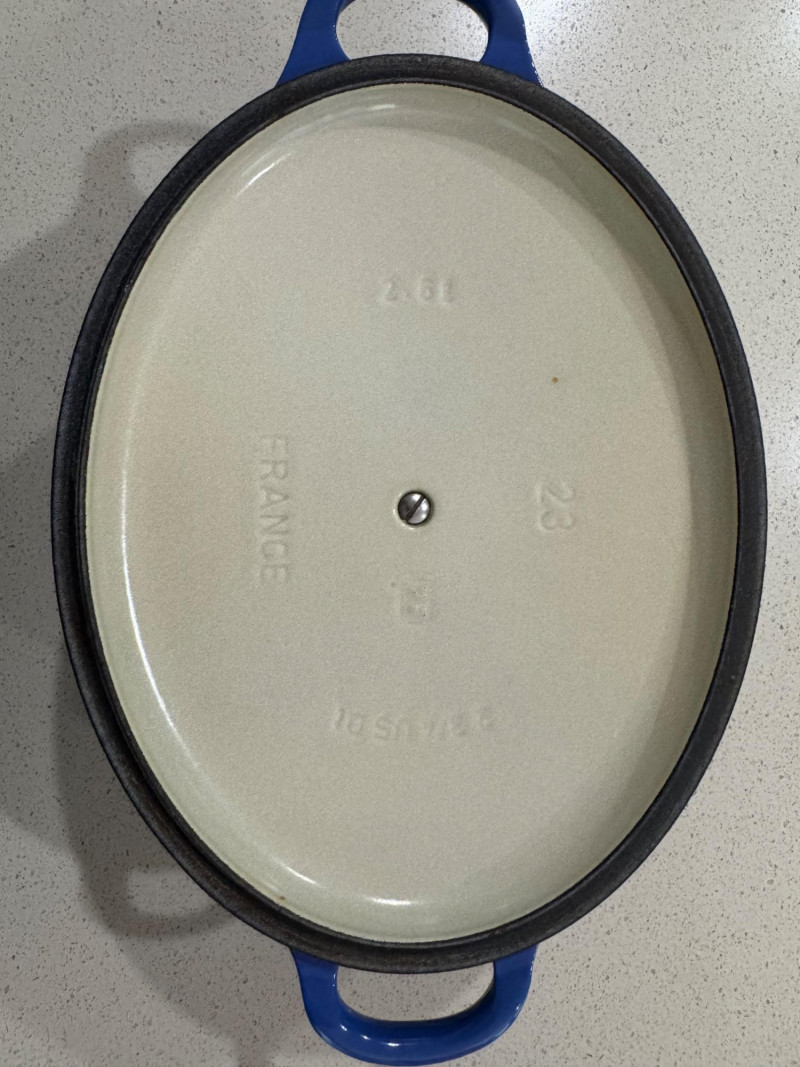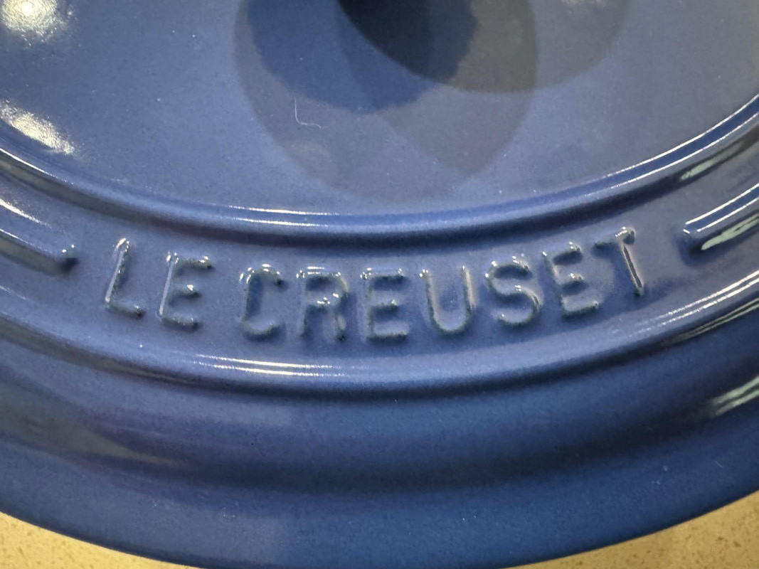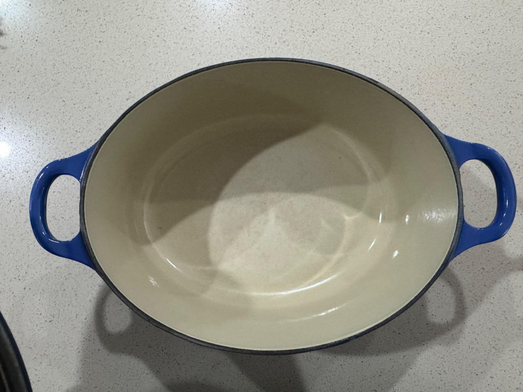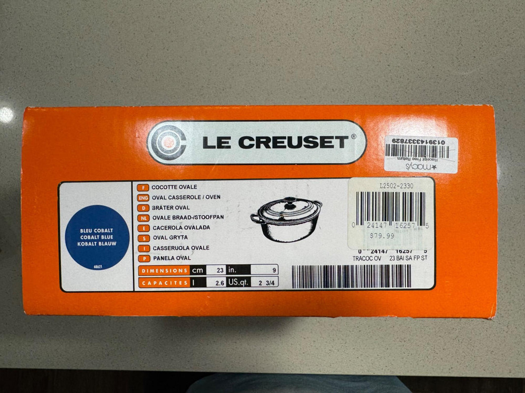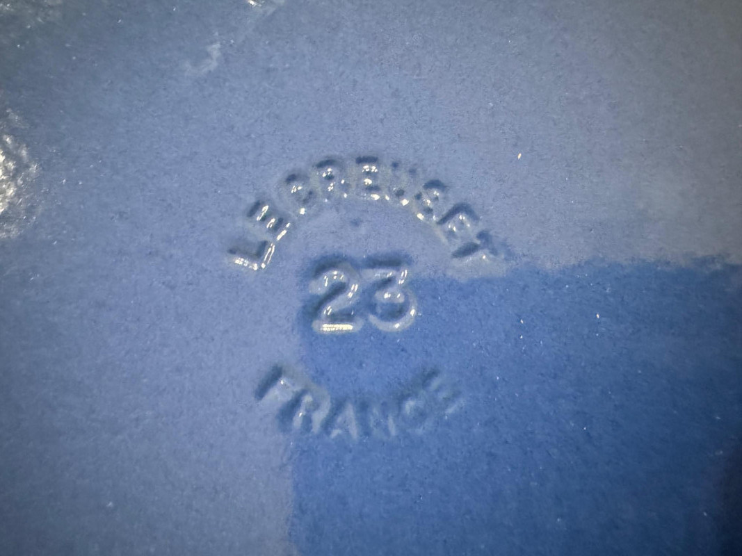 Add a touch of timeless French craftsmanship to your kitchen with this vintage Le Creuset enameled cast iron oval casserole (size #23, approx. 2.75 quarts). Finished in the highly sought-after Cobalt Blue—a discontinued color prized by collectors—this piece combines beauty and performance.