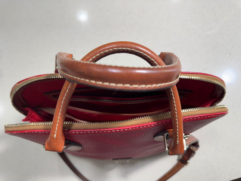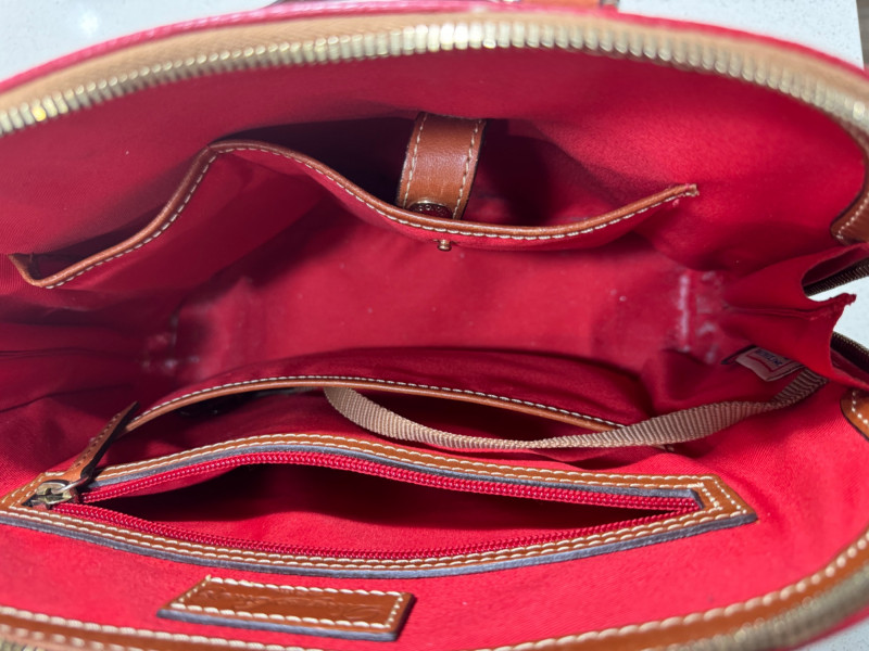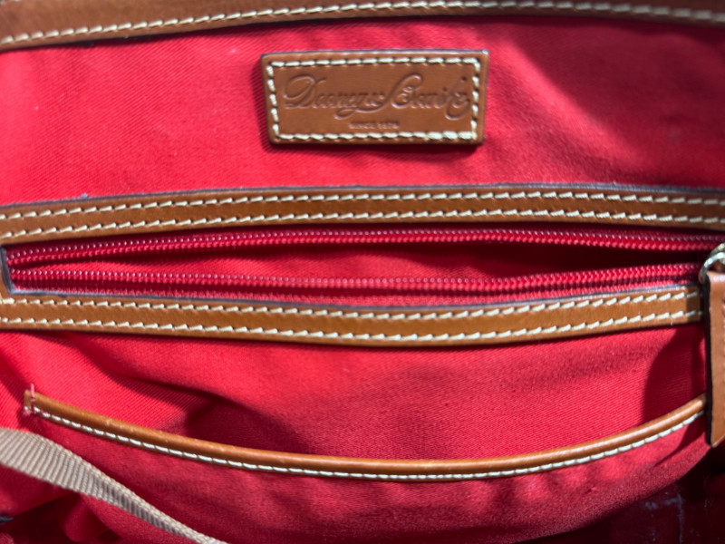 A stylish Dooney & Bourke leather handbag, perfect for everyday use or as a collectible designer accessory. Features: Genuine leather construction Iconic Dooney & Bourke craftsmanship Spacious interior with multiple pockets Timeless design that complements any outfit