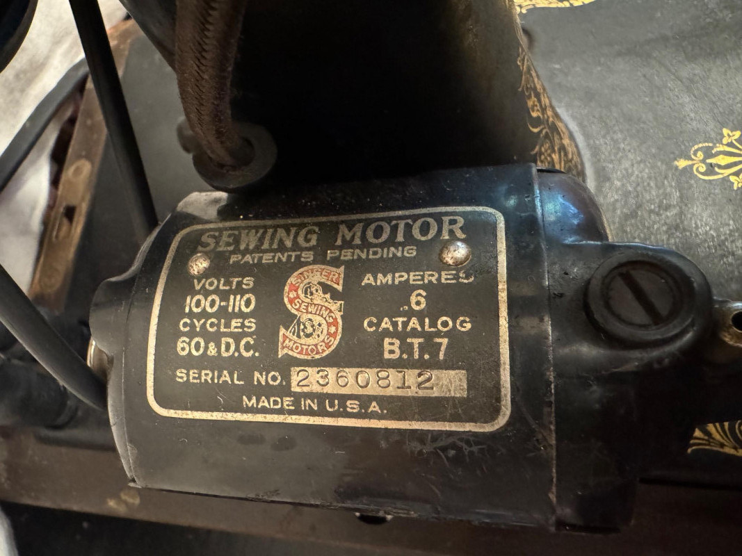 Vintage 1925 Singer Sewing Machine – A beautiful early 20th-century Singer, manufactured at the Elizabethport, New Jersey factory.
