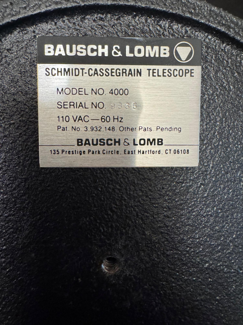 Lot # 4 - Bausch & Lomb Schmidt-Cassegrain Telescope Model 400