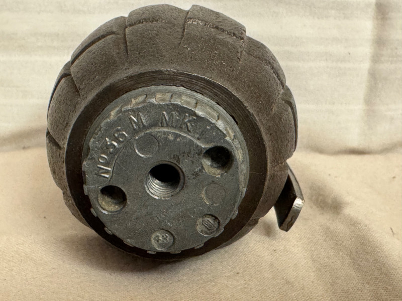 No. 36M → This was the "Mesopotamian" version of the Mills bomb, introduced in 1917. It was waterproofed with shellac and fitted for use in hot climates (such as Mesopotamia in WWI).