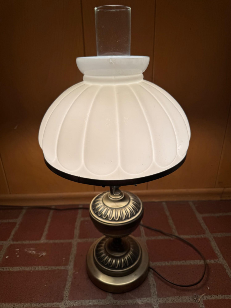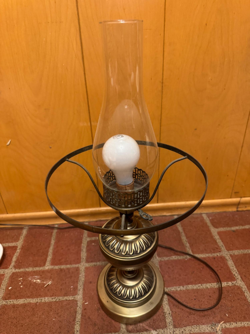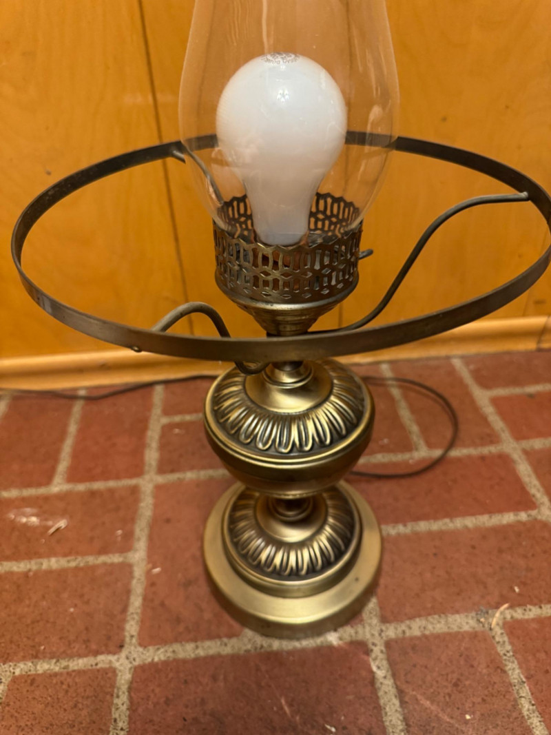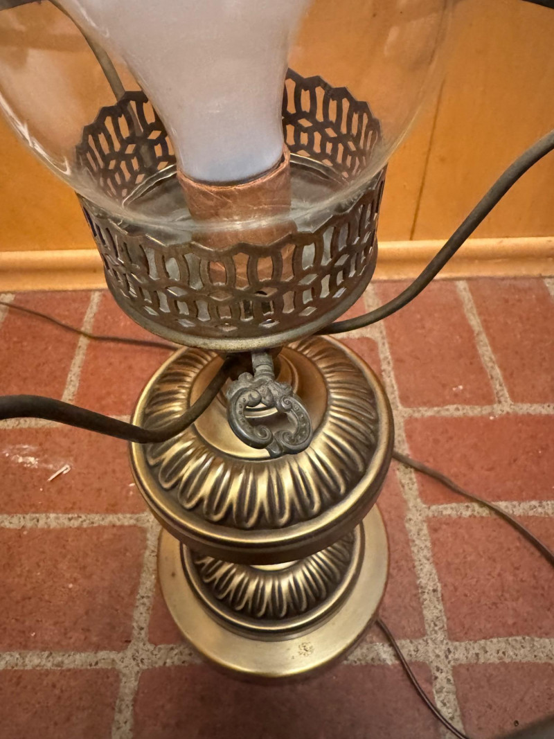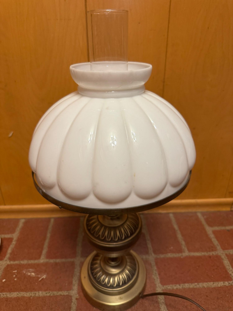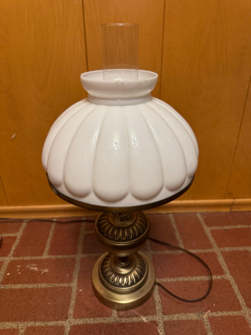 Lot # 14 - Vintage 22" Brass Hurricane Table Lamp w/ Milk Glass Opal Mellon Shade