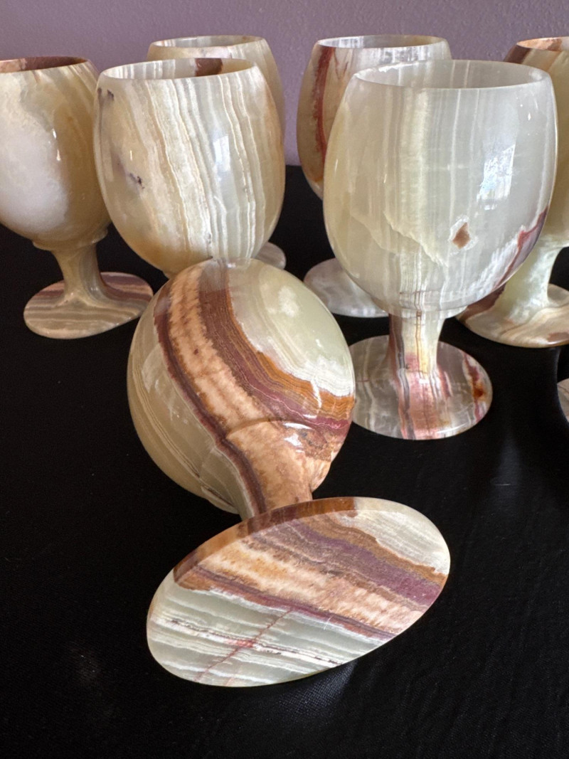 Lot # 14 - Qty 8 - Vintage Agate Stone Goblets