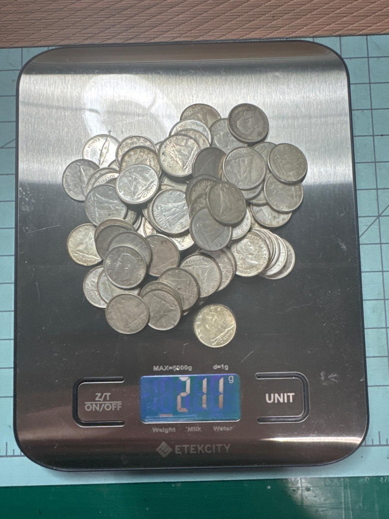 Qty 93 - Canadian Silver Dimes - Years 1920-1967 - 80% Silver 211g