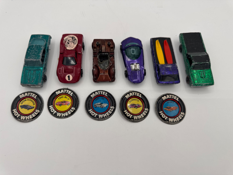 Lot # 5 - Qty 6 Vintage Redline Hot Wheels with Metal Tokens