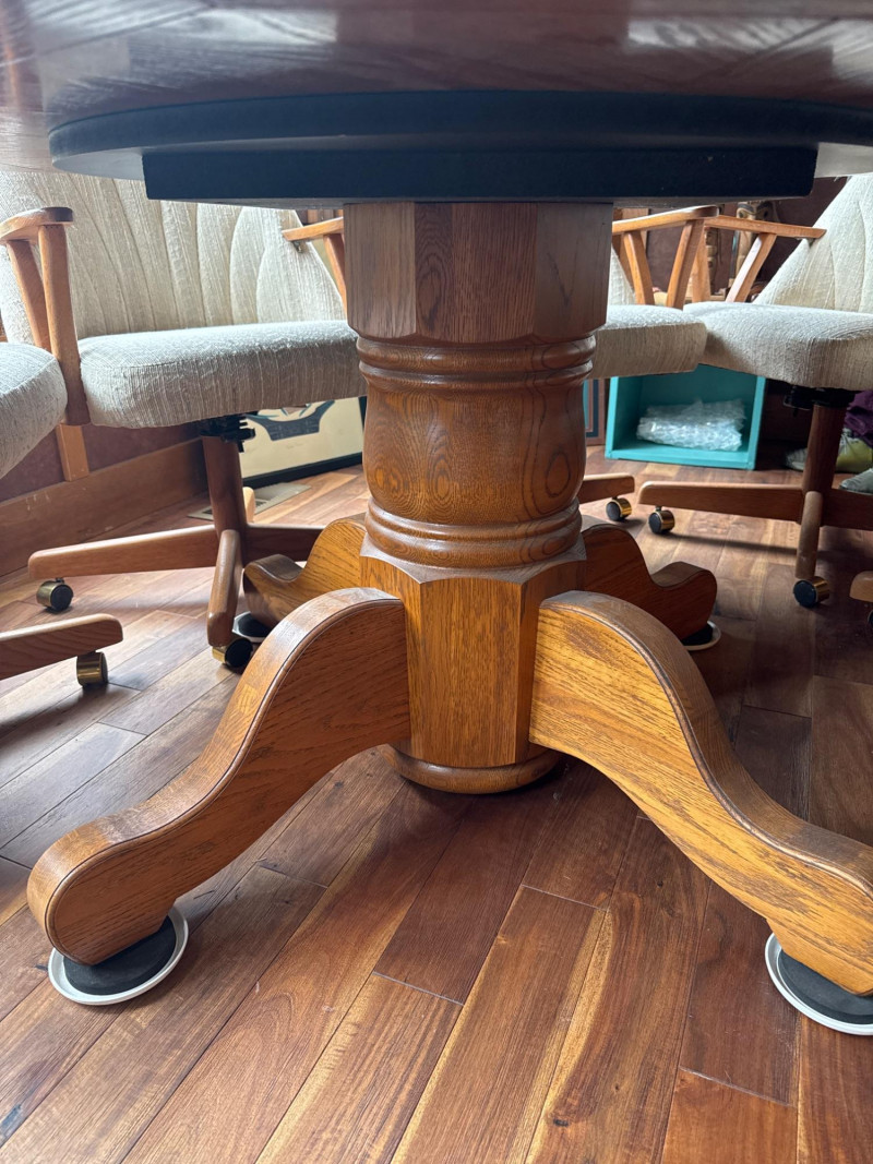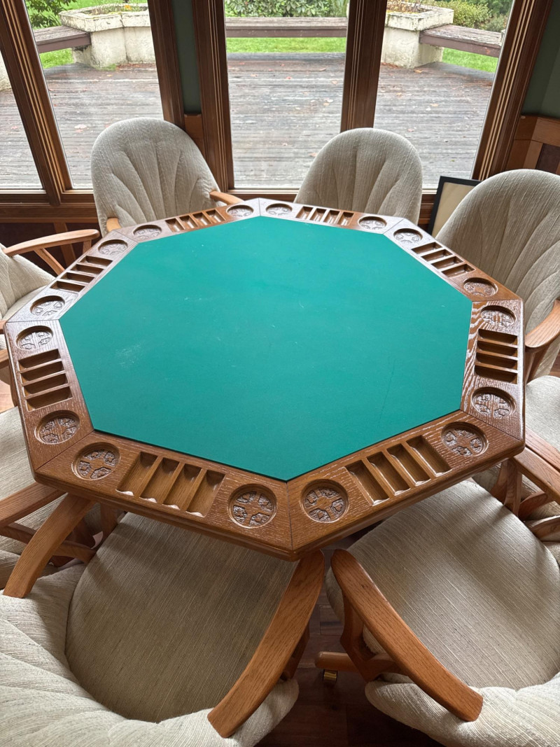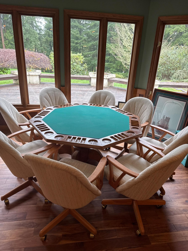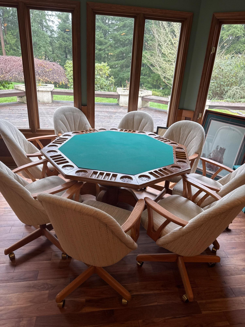 Wood Poker Table with Eight Chairs