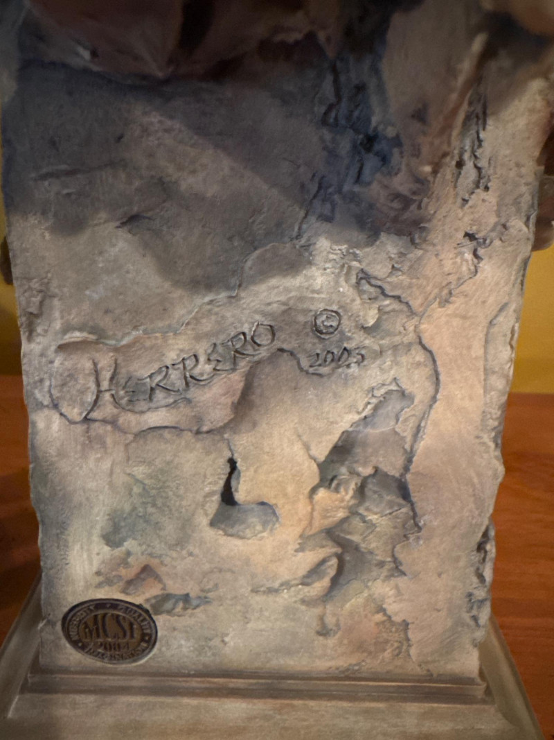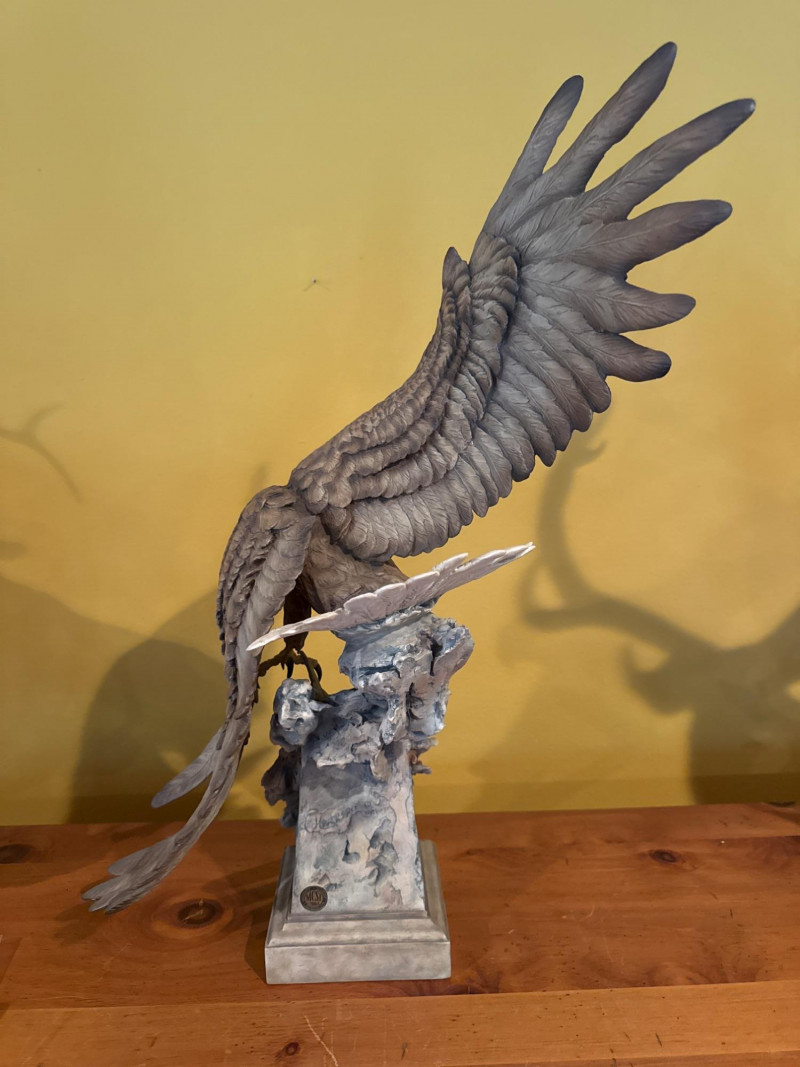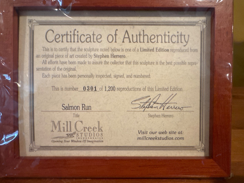 This sculpture is a limited-edition piece called "Salmon Run" by artist Stephen Herrero for Mill Creek Studios.