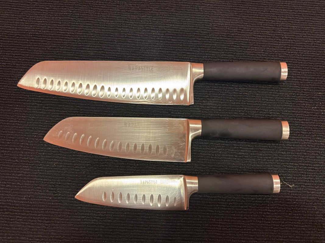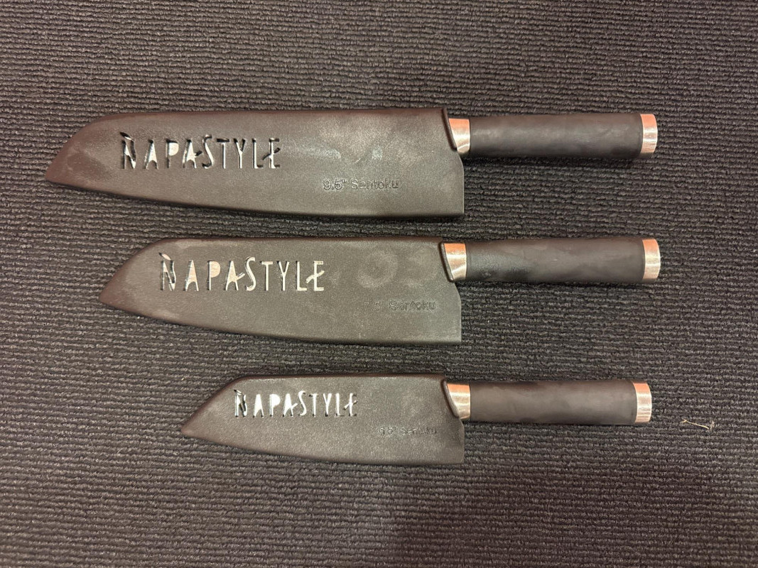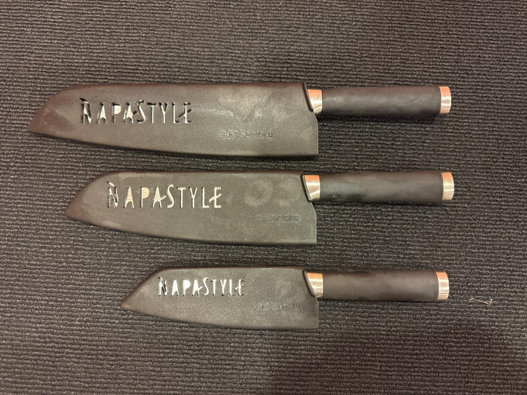 NapaStyle knives, associated with Chef Michael Chiarello's former brand, are primarily Santoku-style knives made with German forged steel and rubber or wood handles No longer made.