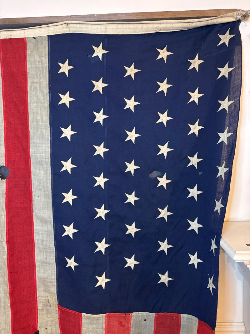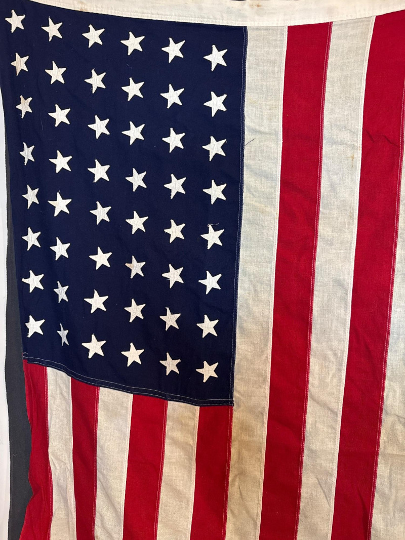 The 45-star flag was the official flag of the United States from July 4, 1896, to July 3, 1908, following the admission of Utah as the 45th state on January 4, 1896. The flag was in use during the Spanish-American War in 1898 and under the presidencies of Grover Cleveland, William McKinley, and Theodore Roosevelt. The 48-star American flag, which was the official flag of the United States from July 4, 1912, to July 3, 1959. This flag flew through some of the most significant periods in U.S. history, including both World War I and World War II. The 45 star flag is 80" Length and 45" wide.