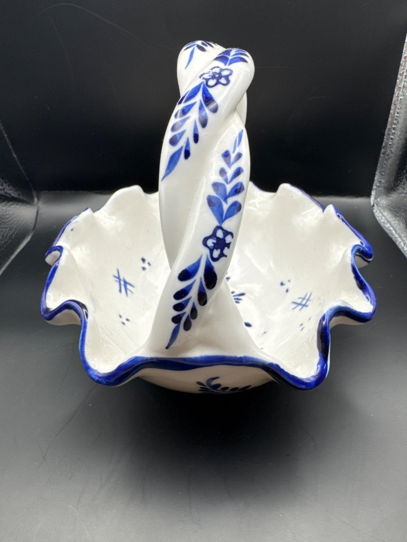 Miniature Delftware Porcelain Figurines w/ Bowl hand-painted in the distinctive blue and white style.