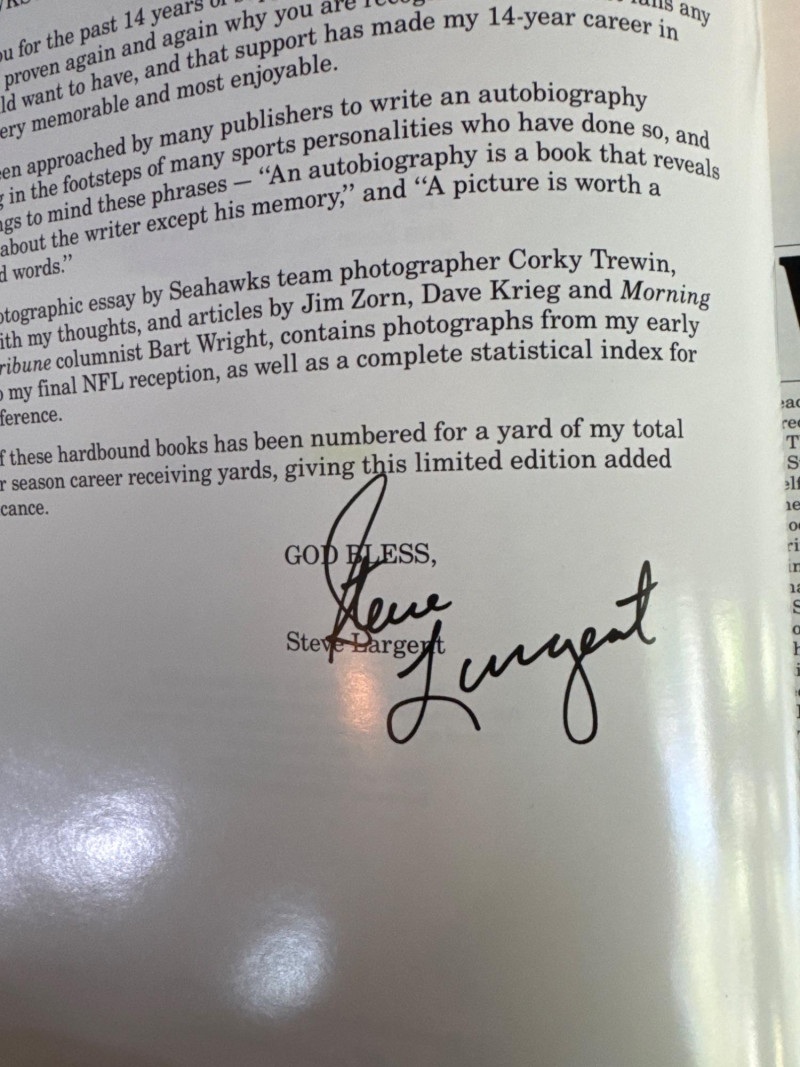 Lot # 13 - Special Limited Edition Hardcover Book About Steve Largent 9981/13089