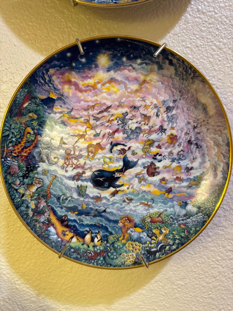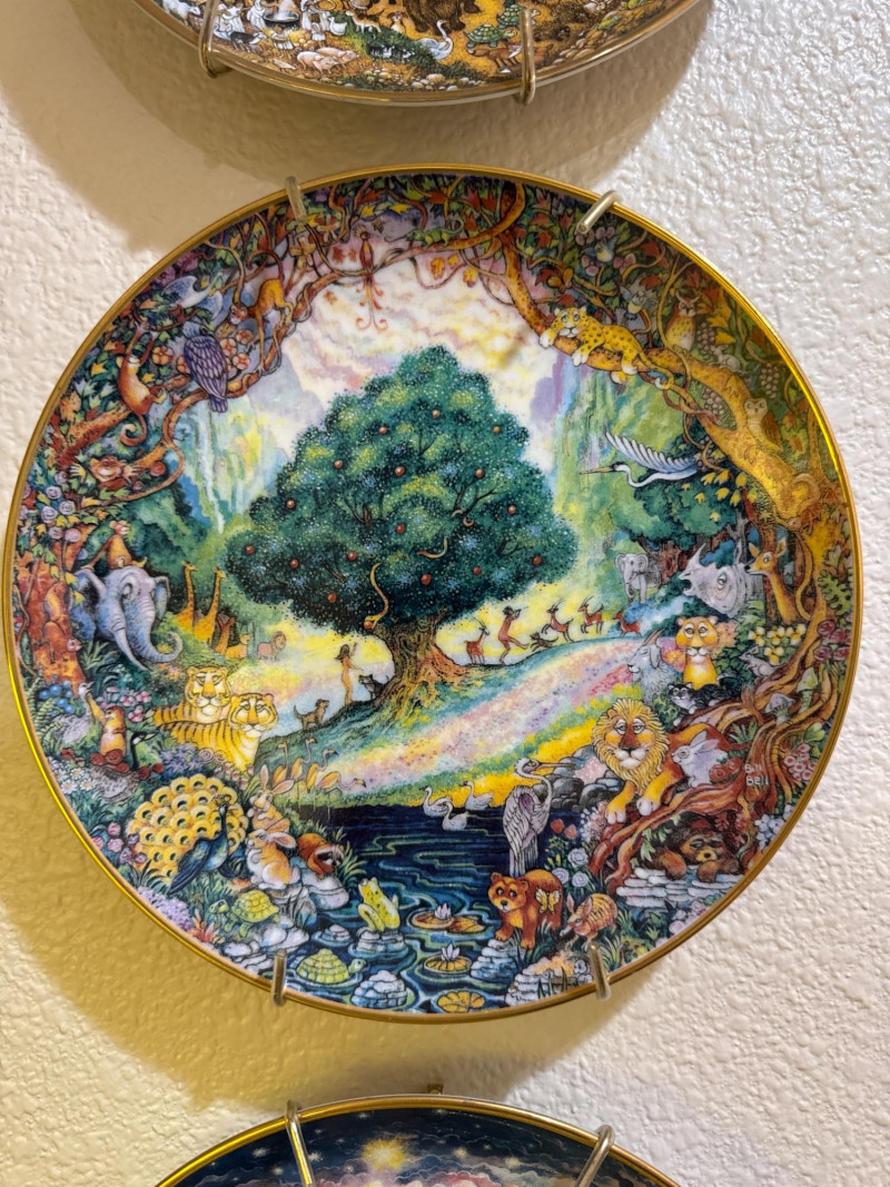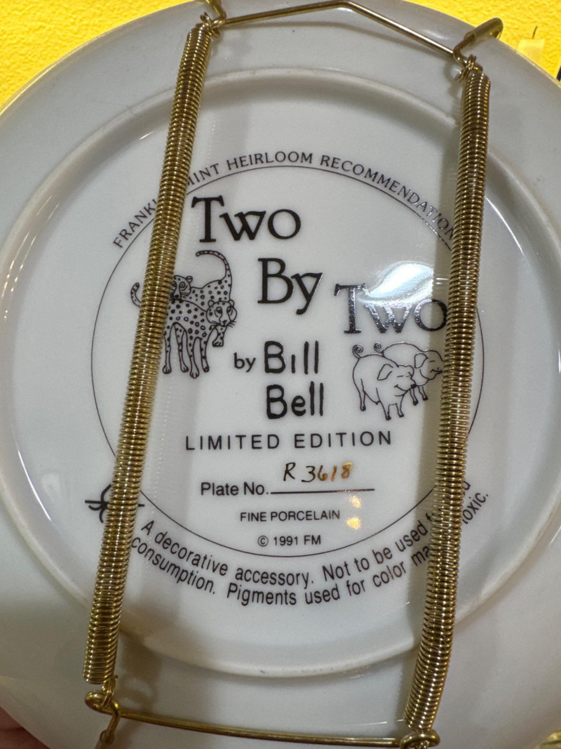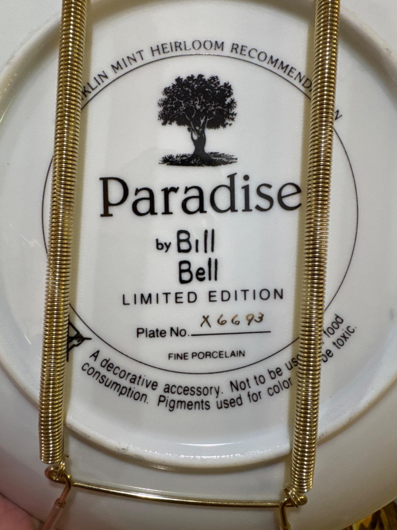 These are limited edition fine porcelain decorative plates from around 1991, featuring vibrant, hand-painted artwork by the artist Bill Bell.