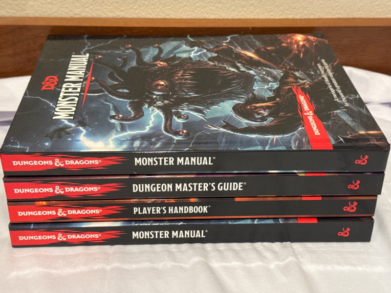 The three primary books are the Player's Handbook, Dungeon Master's Guide, and Monster Manual.