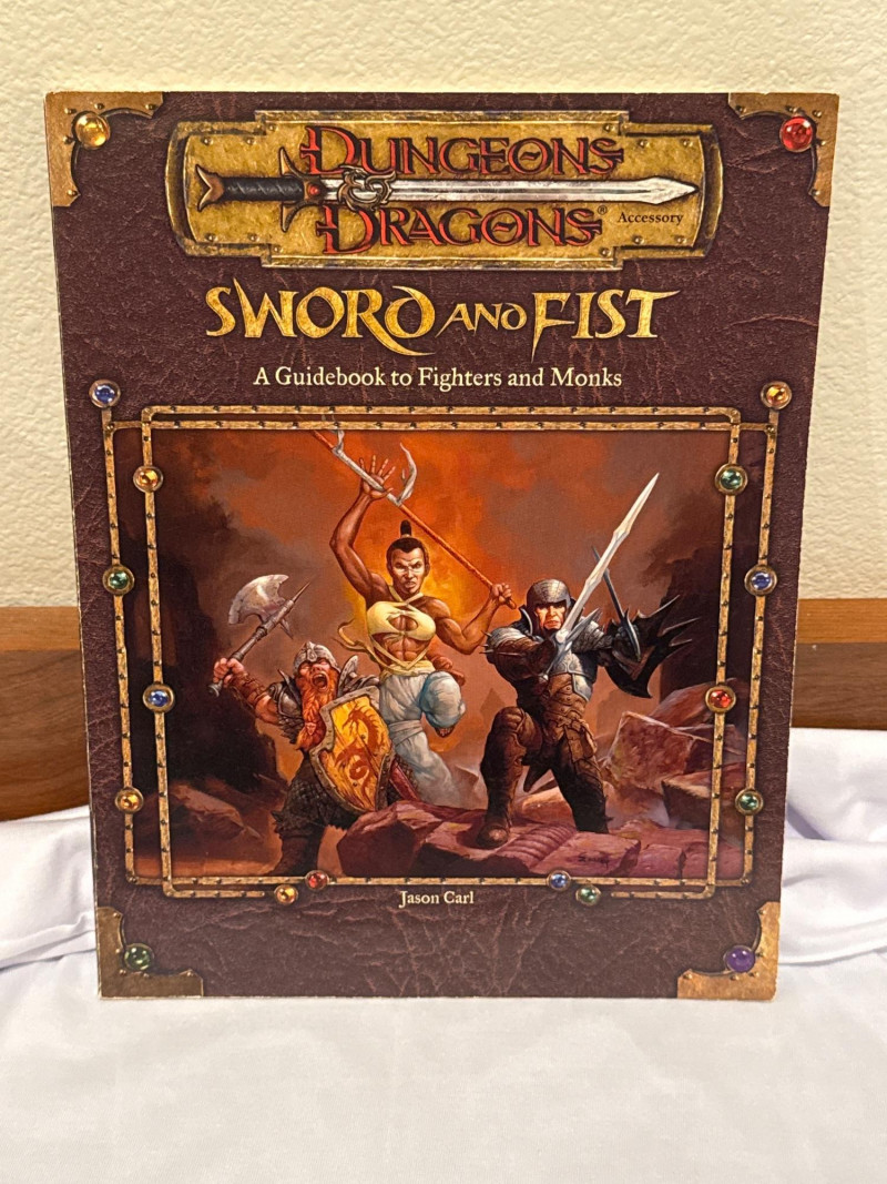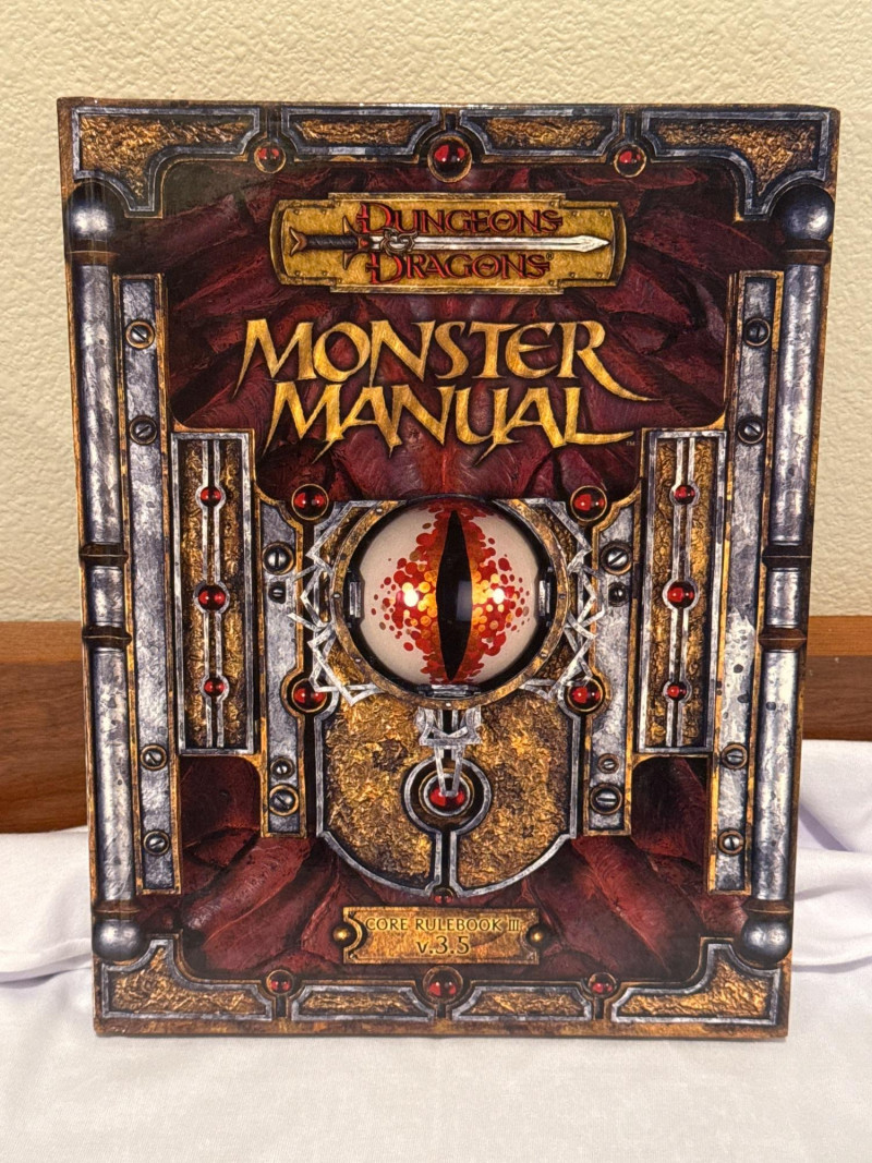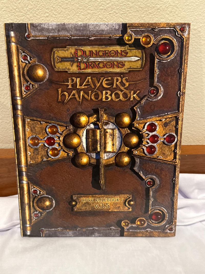 D&D 3.5 Core Rulebooks These books form the foundation of the D&D 3.5 edition ruleset: Player's Handbook v.3.5: The essential guide for creating and playing characters. Monster Manual v.3.5: Contains a wide array of creatures and their statistics for Dungeon Masters to use in their games. Dungeon Master's Guide v.3.5: Provides rules and guidance for running the game, creating worlds, and managing non-player characters and adventures. D&D 3.0 Supplemental "Classbooks" The thinner, softcover books are older 3rd Edition (3.0) supplements, often referred to as "classbooks," which were later compiled and updated into the larger "Complete" series during the 3.5 revision. Tome and Blood: A Guidebook to Wizards and Sorcerers: Supplemental information for arcane spellcasters. Song and Silence: A Guidebook to Bards and Rogues: Provides new feats, prestige classes, and guidelines for skillful characters. Masters of the Wild: A Guidebook to Barbarians, Druids, and Rangers: Offers advice and options for nature-oriented classes. Sword and Fist: A Guidebook to Fighters and Monks: Supplemental content for martial characters. Defenders of the Faith: A Guidebook to Clerics and Paladins: Content for divine-based characters. Dungeons & Dragons (D&D) Map Folio 3-D