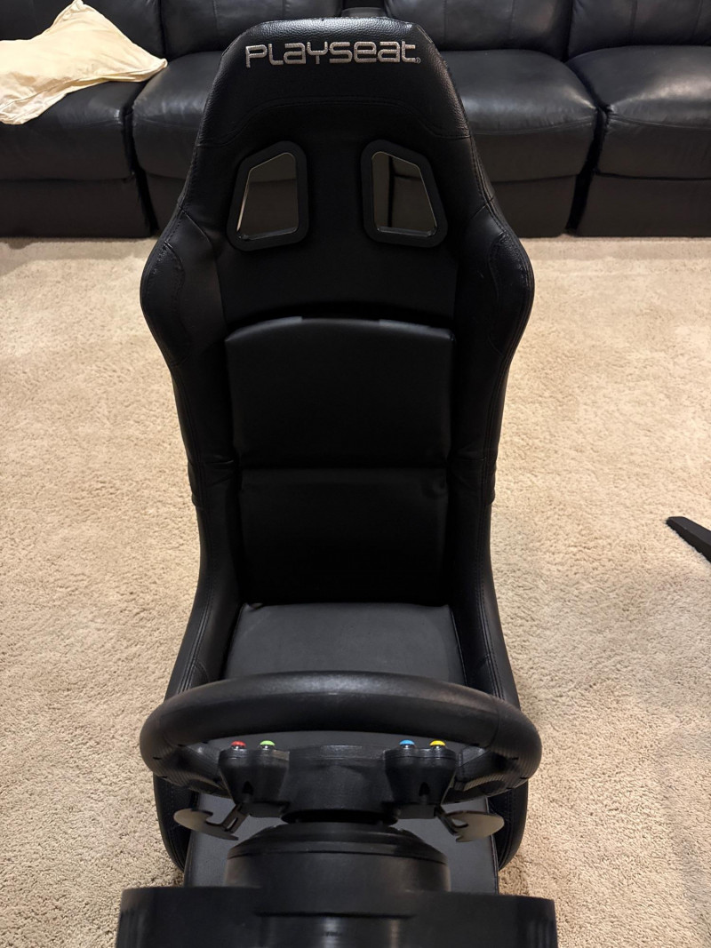 Playseat cockpits are designed to be broadly compatible with all major racing hardware, including the entire range of Thrustmaster steering wheels, pedals, and shifters. 57”-34” length. Adjustable