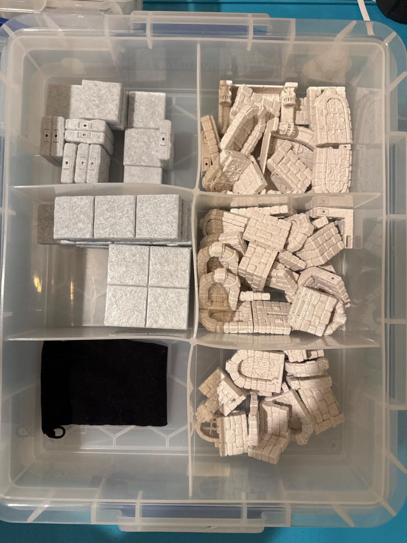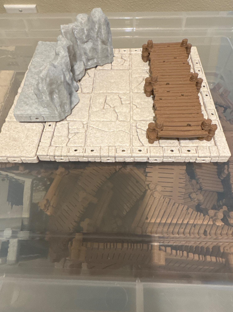 Custom 3D Printed Dungeons and Dragons Terrain plus a rollout terrain mat. Pieces are secured by mini magnets in each piece.