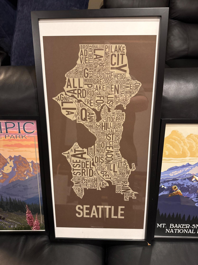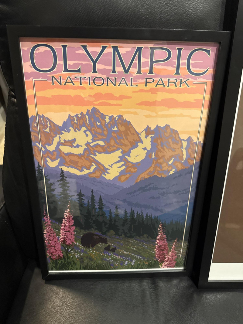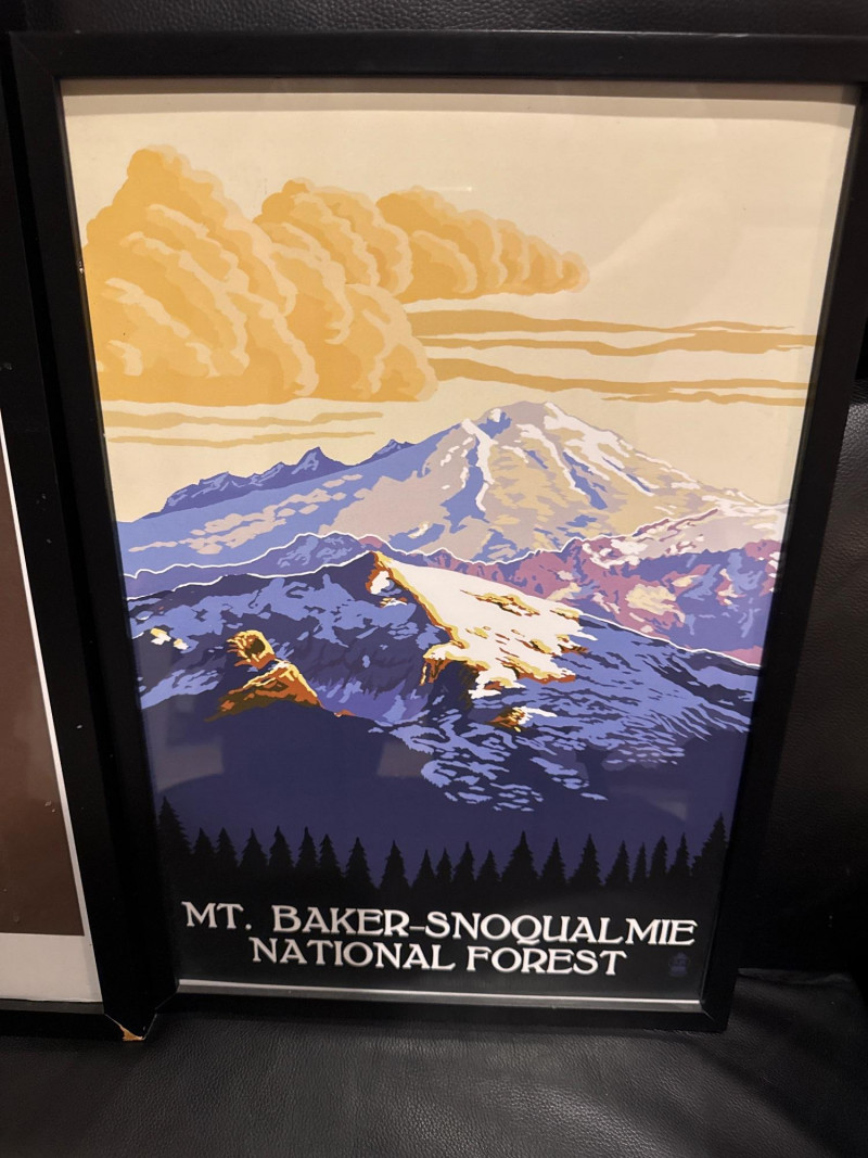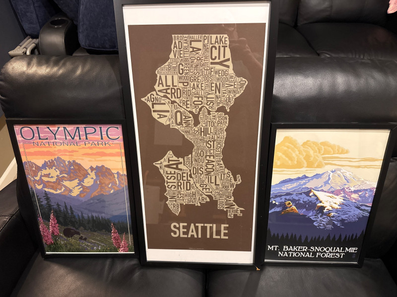3 framed prints of local geographical points. Larger print approximately 18"x30"